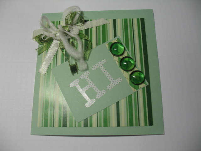 I just loved how cute this card turned out. I used only More Mustard ink from Stampin Up. The background is a stamp from Close To my Heart, the small little border is a foam stamp from Stampendous and the lion is from Stampin Up. I used some twine to make the mane and to attach the layers through More Mustard eyelets(Stampin Up) It's sad the only time I use my sewing supplies is on cards!